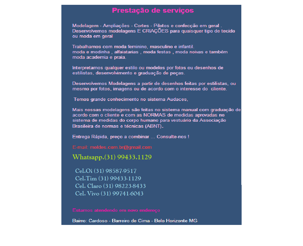 Email: moldes.com.br@gmail.com // modelistafreelancer@gmail.com